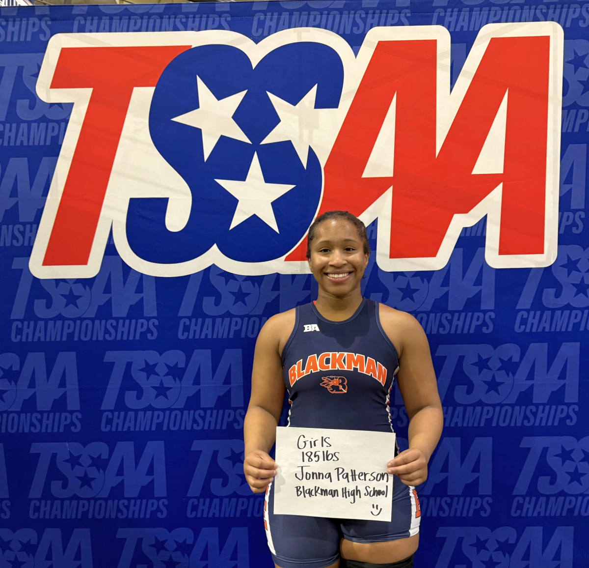 The Blackman Lady Blaze showed resilience and determination on day one of the TSSAA Girls State Wrestling Tournament. Six Lady Blaze athletes qualified for the state tournament this season, marking the largest group the program has ever sent in its six-year history. As the day progressed, the team settled in, found their rhythm, and began to pick up momentum on the state’s biggest stage. By the end of day one, five Lady Blaze wrestlers advanced to compete on day two, continuing their pursuit of podium finishes. The highlight of the day came at 185 pounds, where Jonna Patterson, a senior at Blackman High School, secured a spot in the state finals — the first finals qualifier in program history.